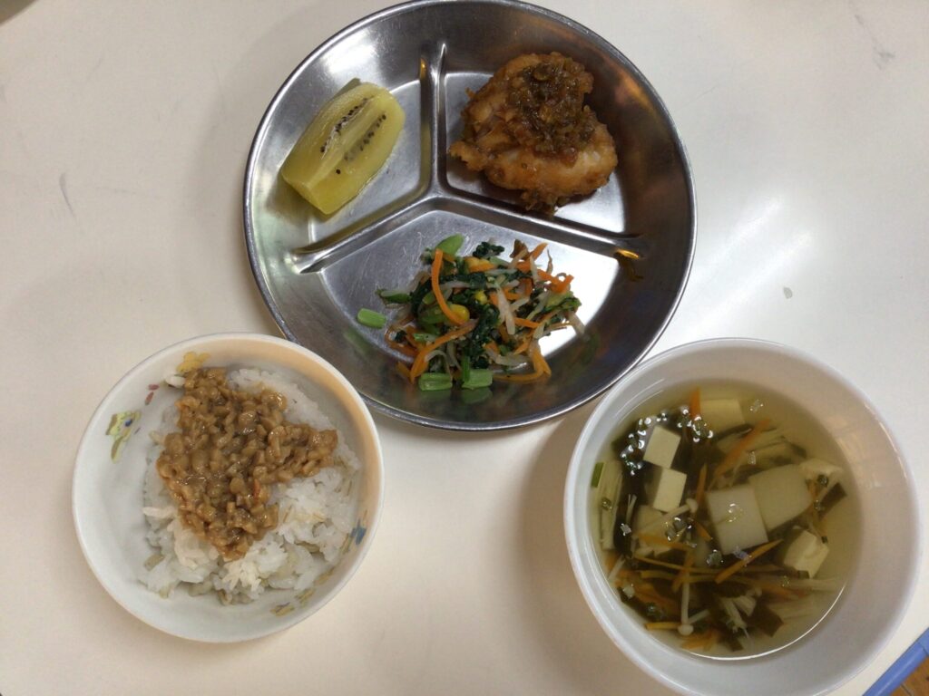 保育ブログ 9月の献立 ② 2025.10.02 9月18日 ★麦ご飯 ★ひきわり納豆 ★揚げ鶏のレモン風味 ★シーザーサラダ ★パスタスープ ★キウイ 9月24日 ★ご飯 ★昆布巻き ★バンサンスー ★豆腐の味噌汁 ★オレンジ 9月25日 ★麦ご飯 ★ひきわり納豆 ★油淋鶏 ★青菜のコーン和え ★はんぺんのすまし汁 ★キウイ 9月26日 ★ご飯 ★魚のピザ焼き ★ポテトサラダ ★ニラ玉汁 ★バナナ 9月の献立 ① 前の記事 🚩金吾様祭り🚩 次の記事