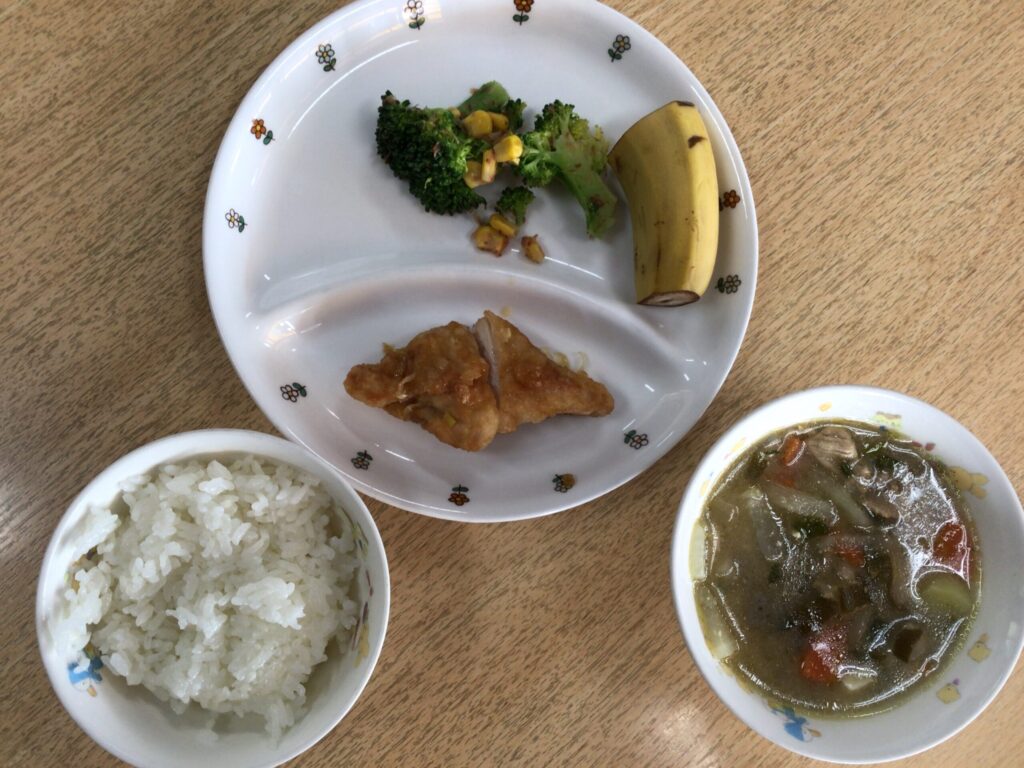給食ブログ 1月の給食① 2026.01.23 1月6日 ★ご飯 ★魚のケチャップからめ ★キャベツのお浸し ★根菜味噌汁 ★りんご 1月7日 ★ご飯 ★肉じゃが ★青菜のごま和え ★かみなり汁 ★オレンジ 1月13日 ★ご飯 ★油淋鶏 ★ブロッコリーのおかか和え ★じゃが芋入り豚汁 ★バナナ 1月14日 ★ご飯 ★昆布巻き ★バンサンスー ★豆腐とワカメの味噌汁 ★オレンジ 白熱のカルタ遊び✊🔥 前の記事 1月の給食② 次の記事