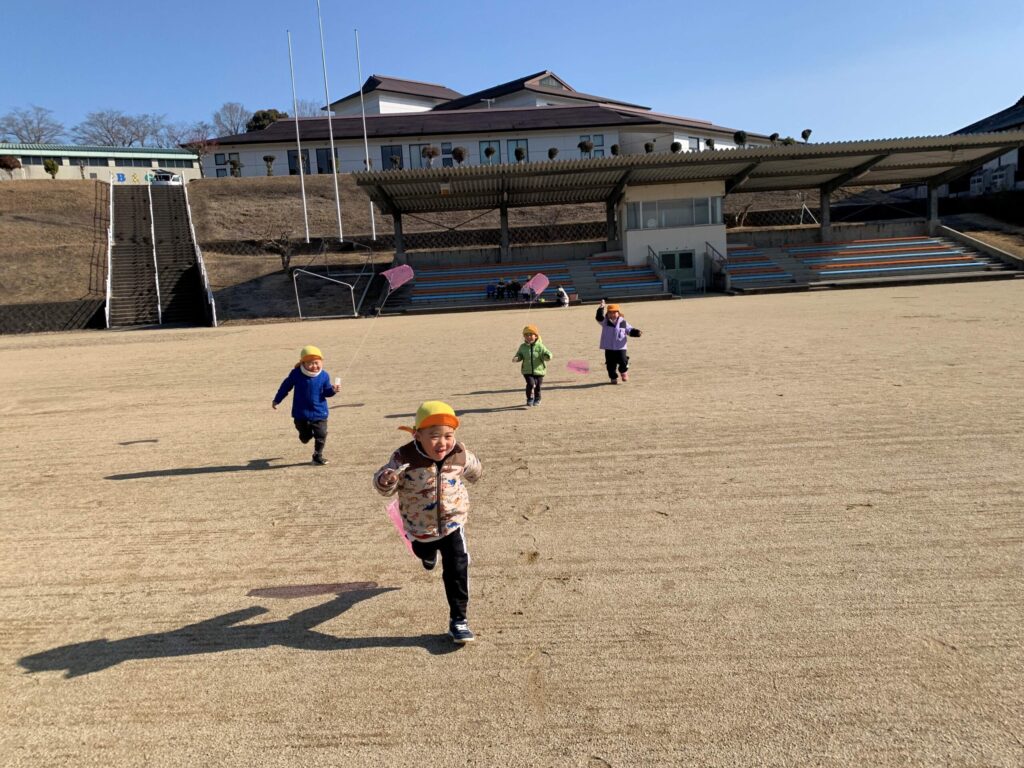 子どもも保育者も広~いグラウンドを行ったり来たり…たくさん走り回って汗をかくほどあっという間に身体もポカポカ温まりました👍