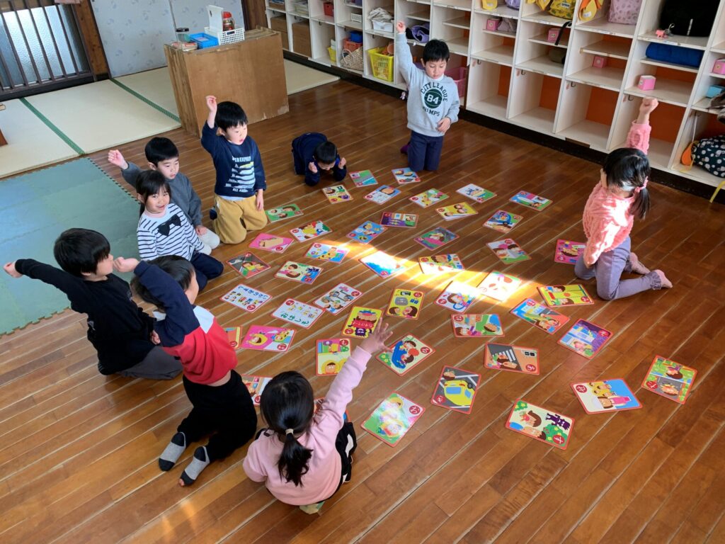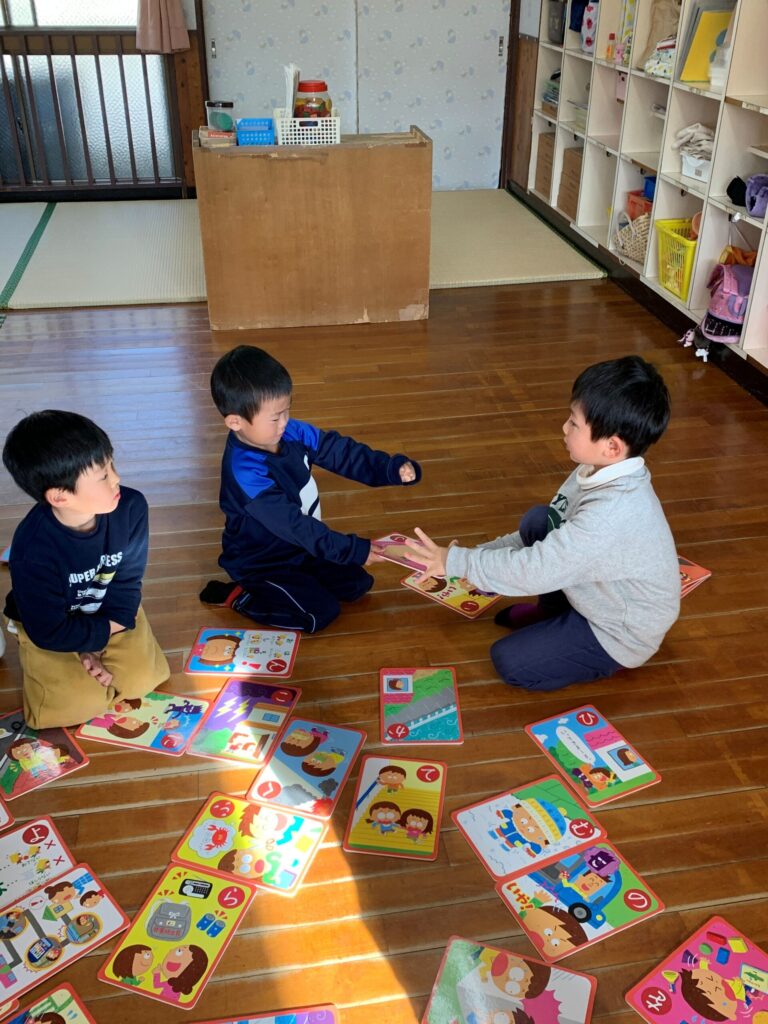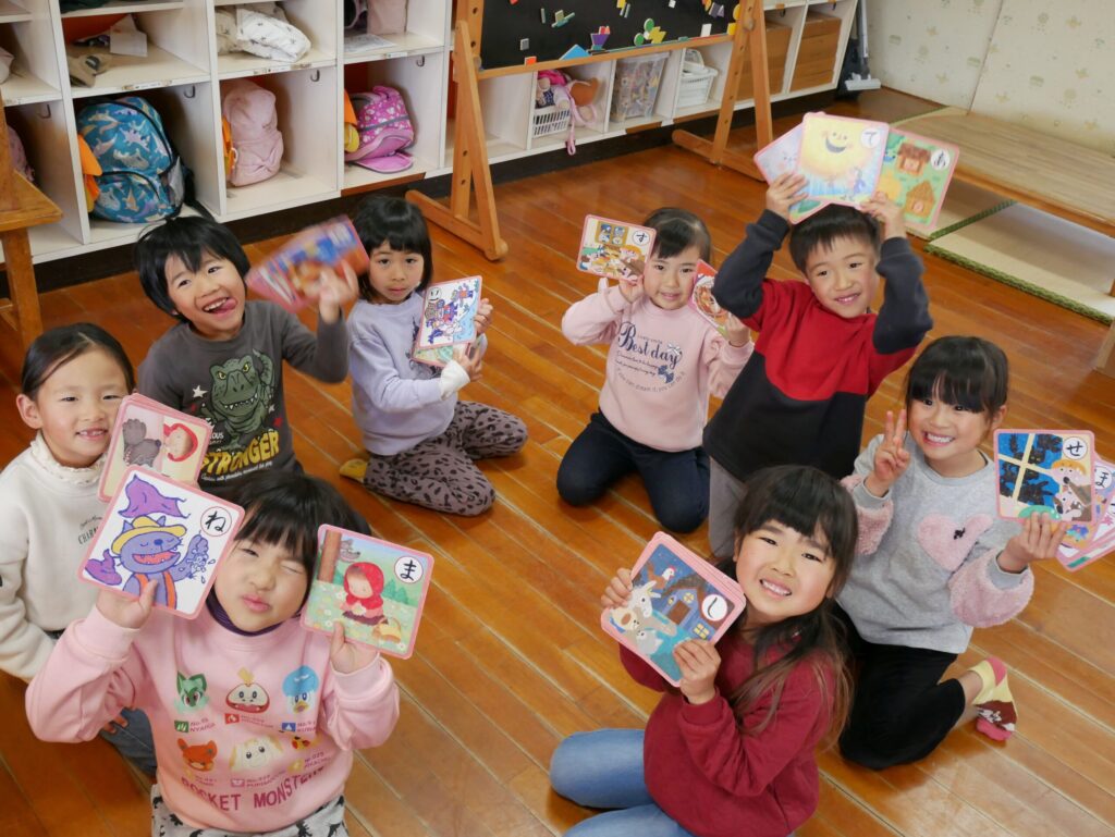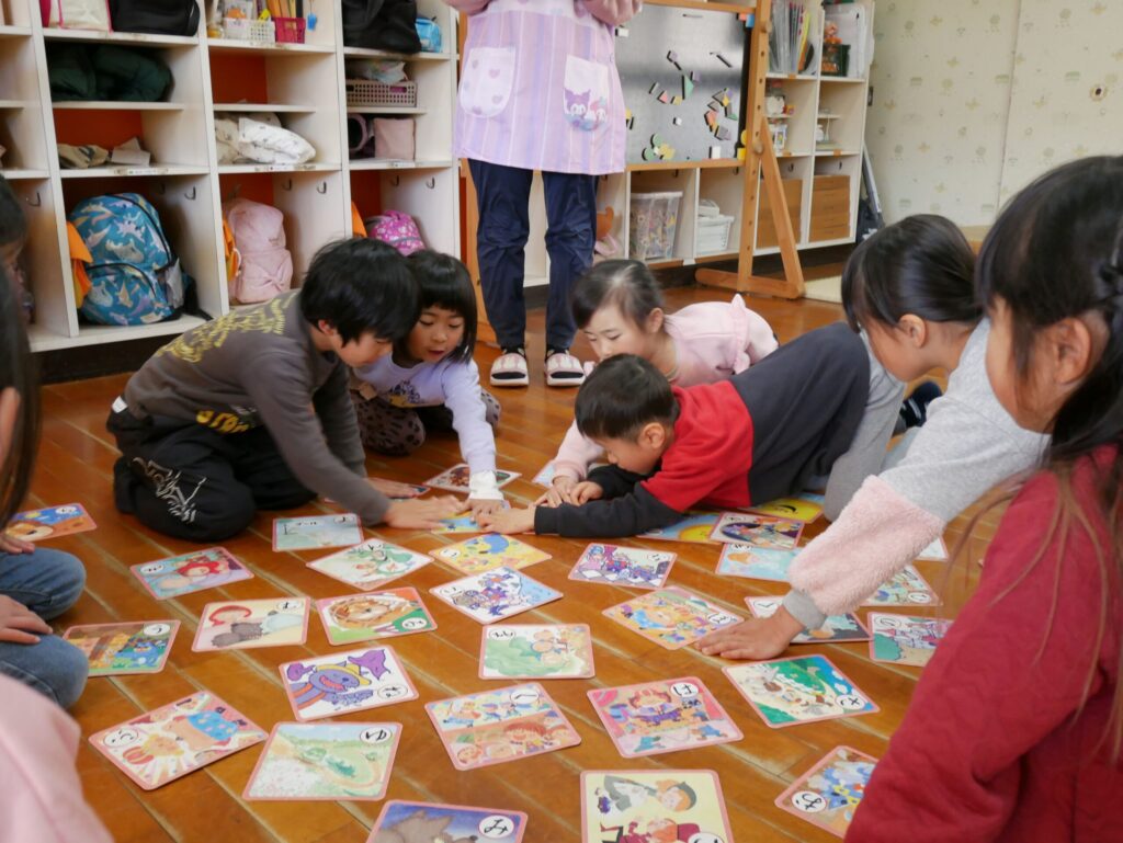 文字が読める・読めないの個人差はありますが、それでも絵を見たり、文字の形を見たりしながら、それぞれ札をGETするために頑張っていました🤗✨