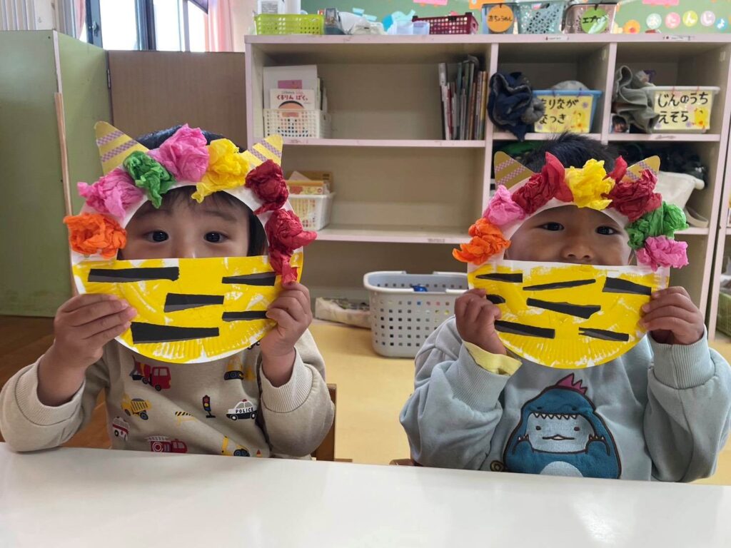 2月3日の節分の日には、自分達で作ったお面をつけて、豆まきを楽しもうね😉👍