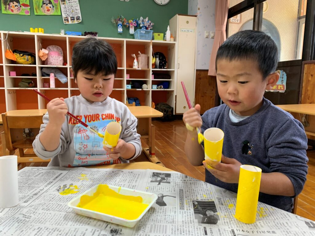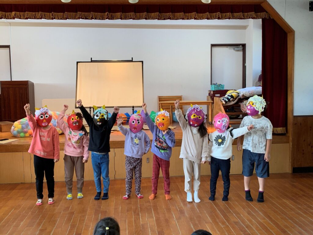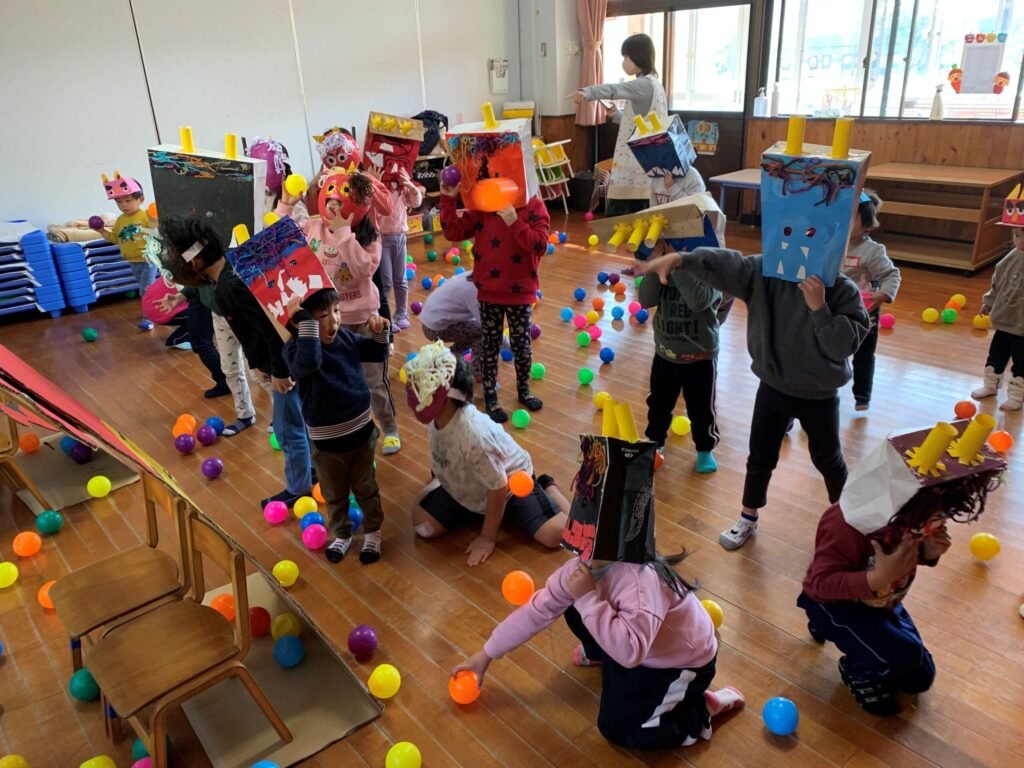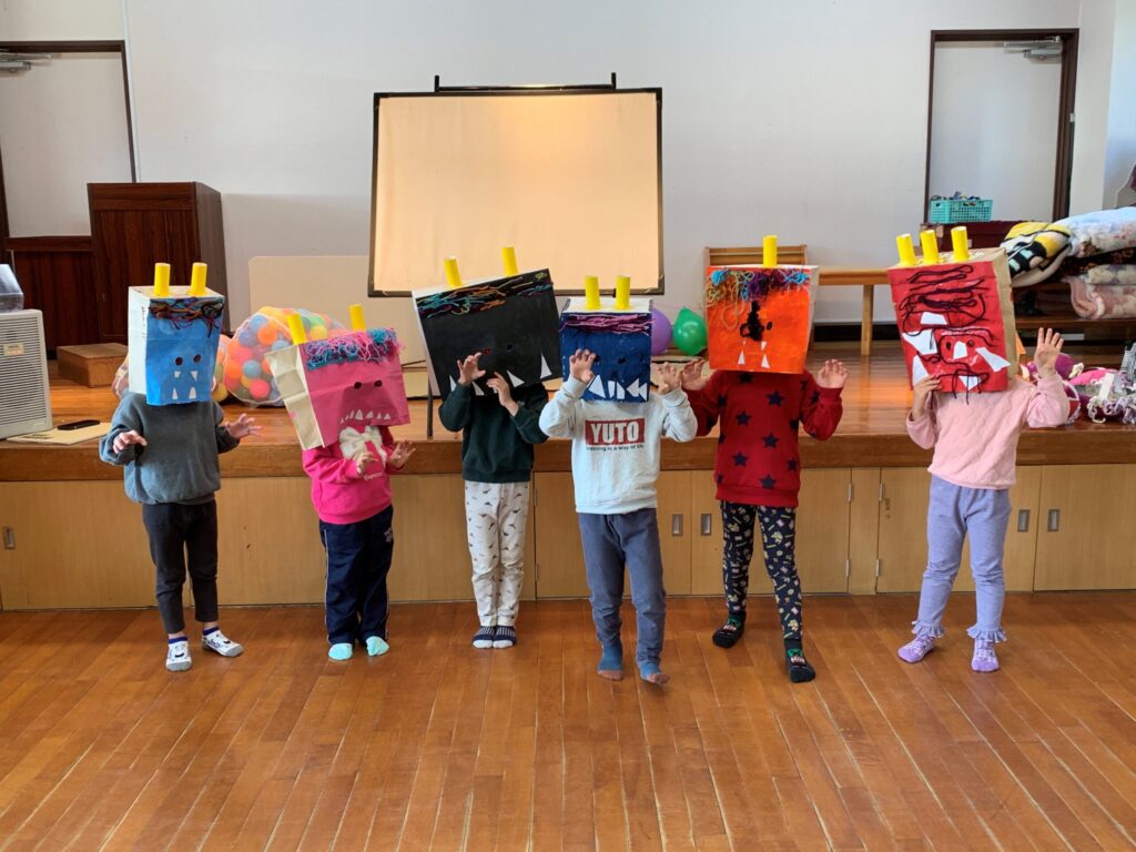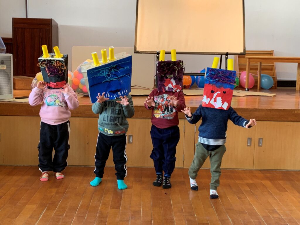 年少・年中クラスは、紙袋や廃材を使って👹🎶