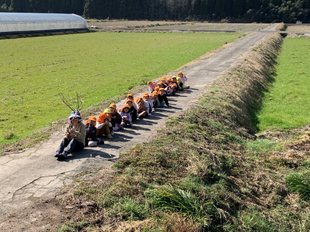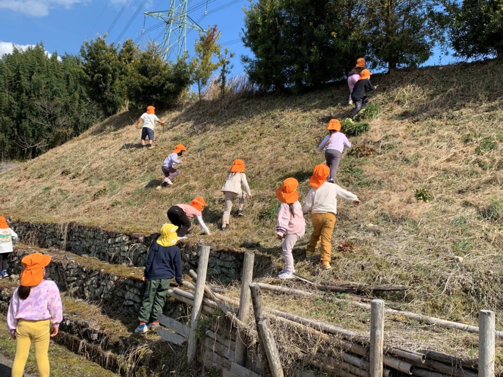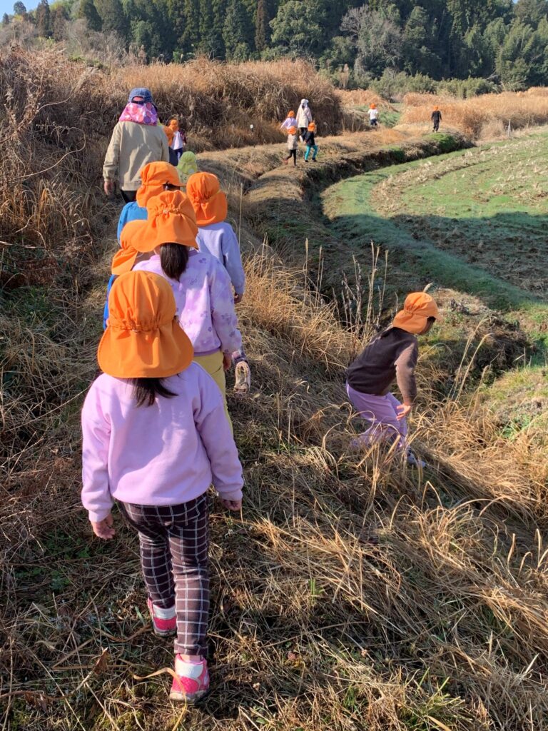 しばらく梅畑で遊んだ後は…年中児さんと年長児さんは、帰り道もまだまだ歩くぞーーーーーー🤗🚩