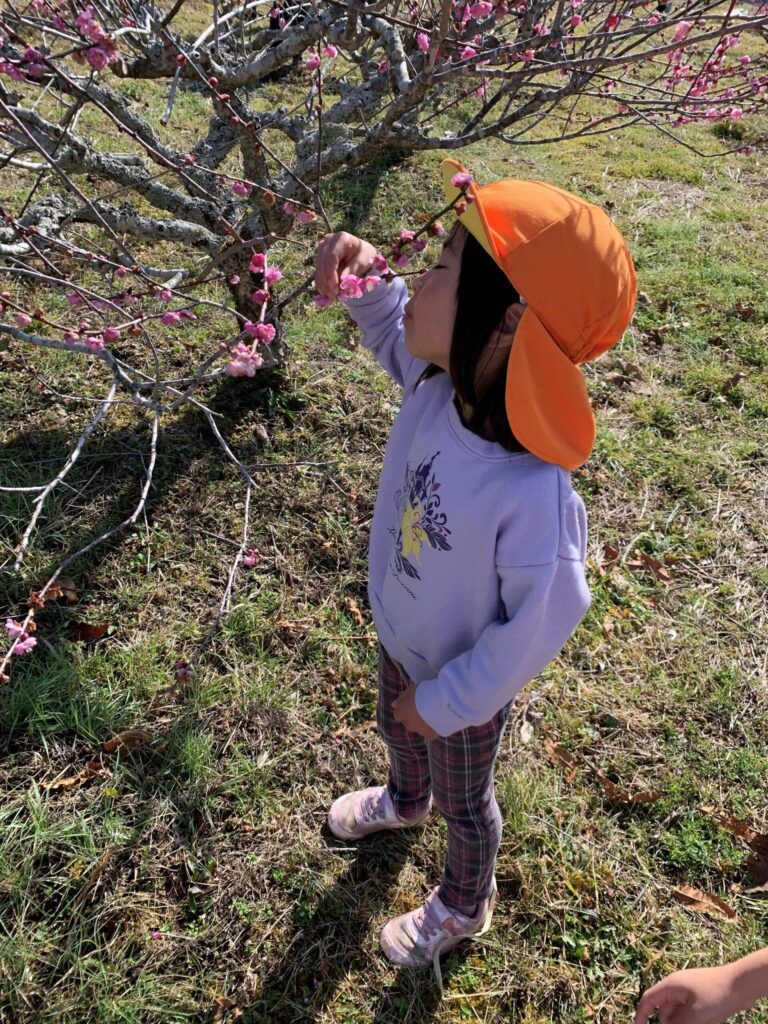 毎年、園長先生の梅畑の梅の花が開花する頃に子ども達と一緒に長距離散歩をして、梅畑でお昼ご飯を食べる『梅見ランチ』を開催しているのですが、今年もキレイな梅の花が咲きました🥰🌸