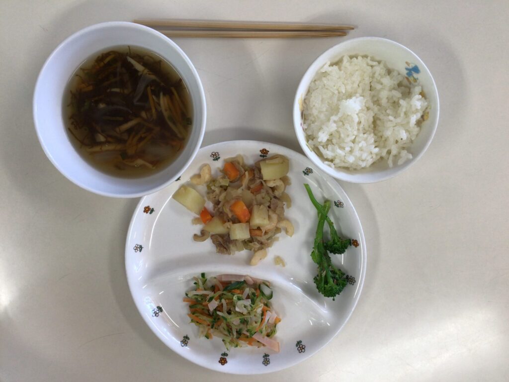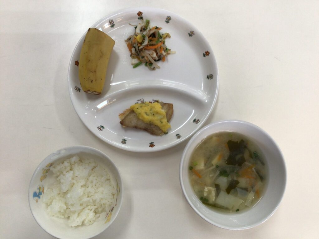 給食ブログ 4月の給食① 2026.04.18 4月3日 ★ご飯 ★鶏肉のケチャップからめ ★コロコロサラダ ★ほうれん草のすまし汁 ★オレンジ 4月7日 ★ご飯 ★白身魚のサラダ焼き ★小松菜とちくわのお浸し ★豆腐と筍の味噌汁 ★バナナ 4月8日 ★ご飯 ★切干大根のけんちん煮 ★きゅうりともやしのナムル ★もずくスープ ★みかん缶 3月の給食③ 前の記事